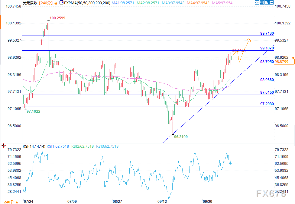 动量目标显示温和走强,相对强弱指数(RSI)亲热63,这评释众头仍主导趋向。若美元指数向98.70实行矫健回调,或为投资者供应从头入场的机遇;而冲破99.18则将确认上行趋向的延续。