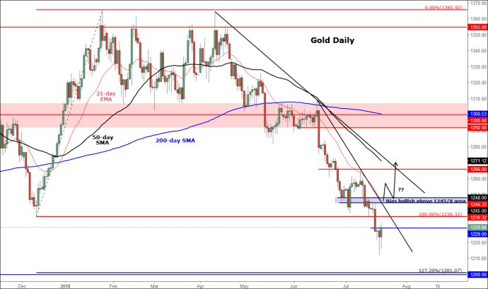 但咱们聚焦于短线,潜正在阻力位于之前曾充任支柱的$1236。不外,如黄金未能于此遇阻并冲破近期高点$1245,我以为黄金或开展更大幅回撤,从而为再度攻向$1300铺平道道。与此同时,如买盘动力减退,金价跌破本周低点,则看涨落空。此情境下,黄金有不妨探向$1200。